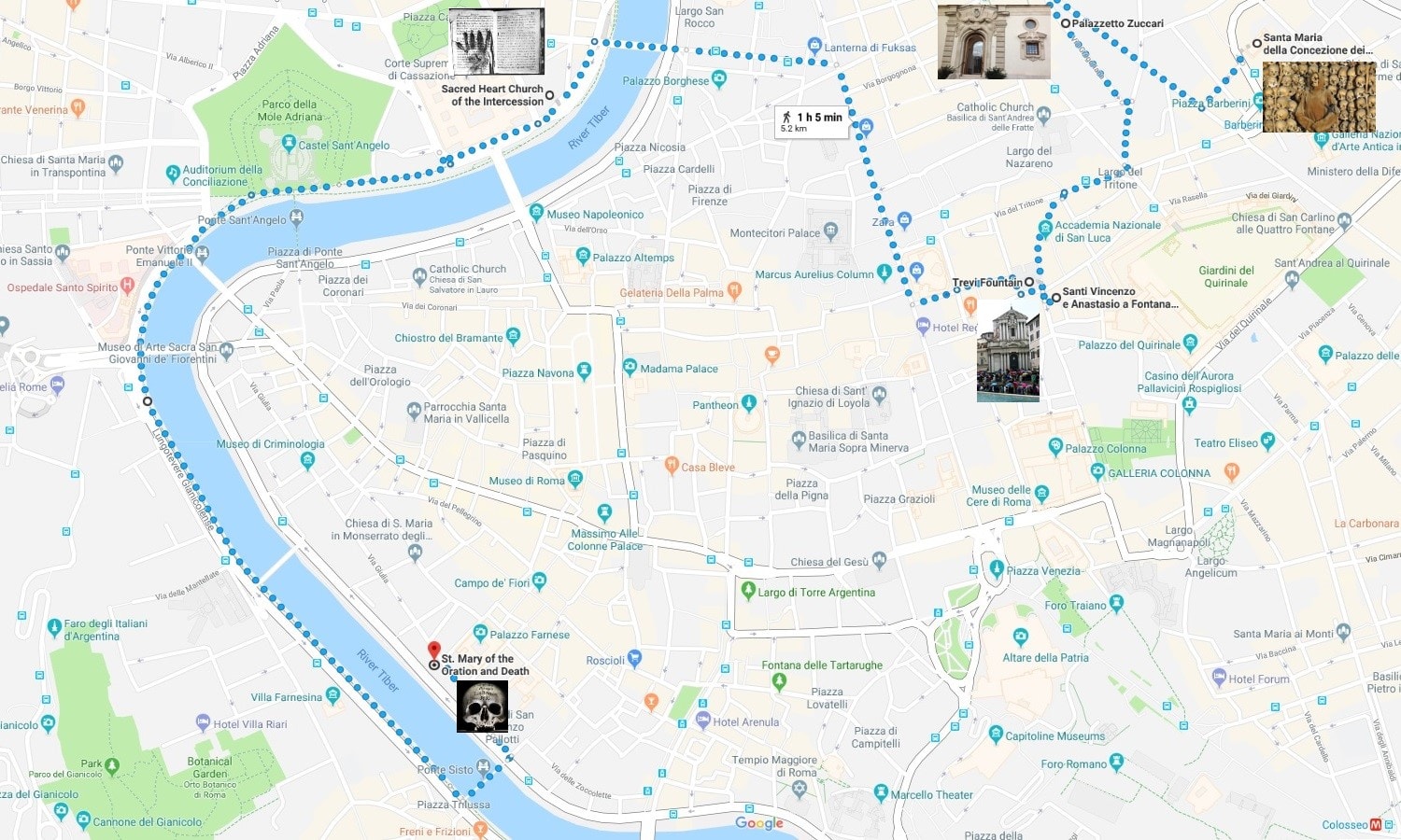 You will continue by bus along Lungotevere street up to the Ponte Sisto or nearby, from where you will continue on foot to Via Giulia to visit the Church of St. Mary of the Oration and Death, seat of the homonymous confraternity, the last macabre place of our tour which presents symbols of death.
